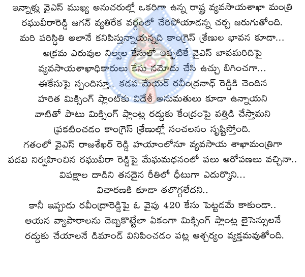 raghuveera reddy, ys rajashekhar reddy, agriculture minister, congress, ys jagan, mixing plant